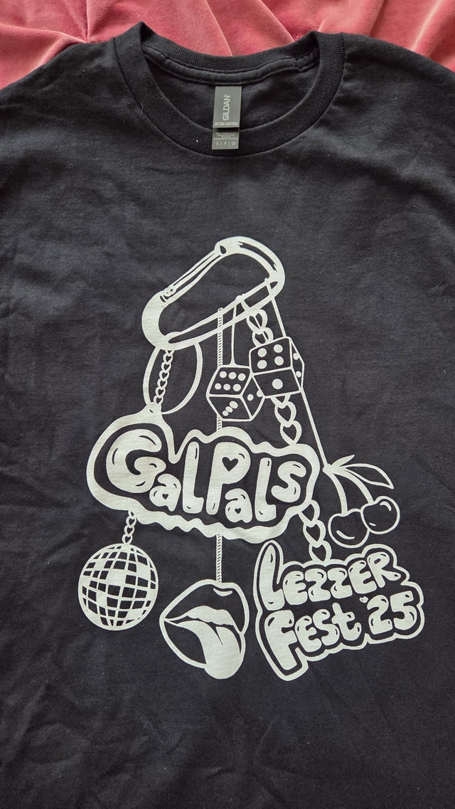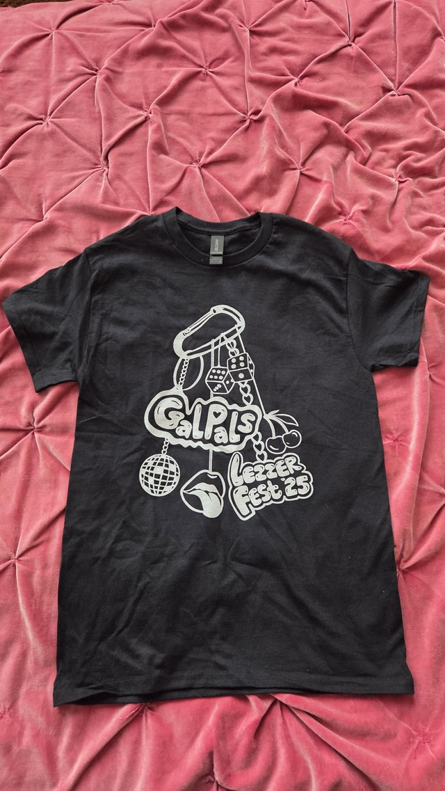 Gal Pals Lezzer Fest 2025 T-Shirt in black. Printed on Gildan Ultra Cotton.